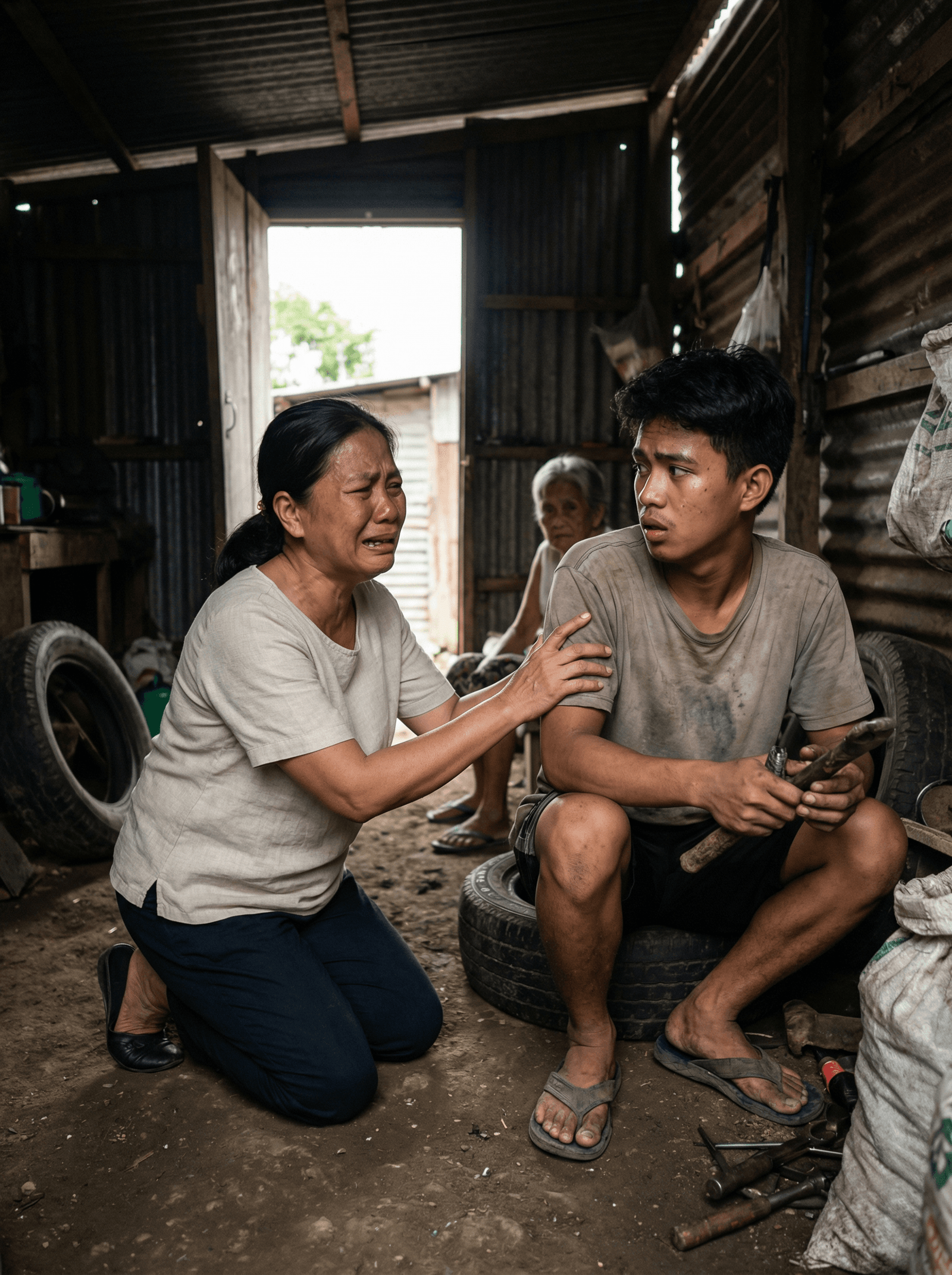 Hindi agad nakapagsalita si Teresa. Nakatayo lamang siya sa harap ng bukas na pinto, habang nakatingin sa binatang si Noel. Payat ito, maitim sa araw, halatang sanay sa hirap, at may mga palad na gasgas sa trabaho. Sa sulok ng maliit na bahay, naroon ang isang matandang babae na halos hindi na makatayo nang maayos. Sa lupa ay nakakalat ang lumang goma, gamit, at mga sako. Malayo ito sa anumang buhay na pinangarap ni Teresa para sa anak na iniwan niya noon.