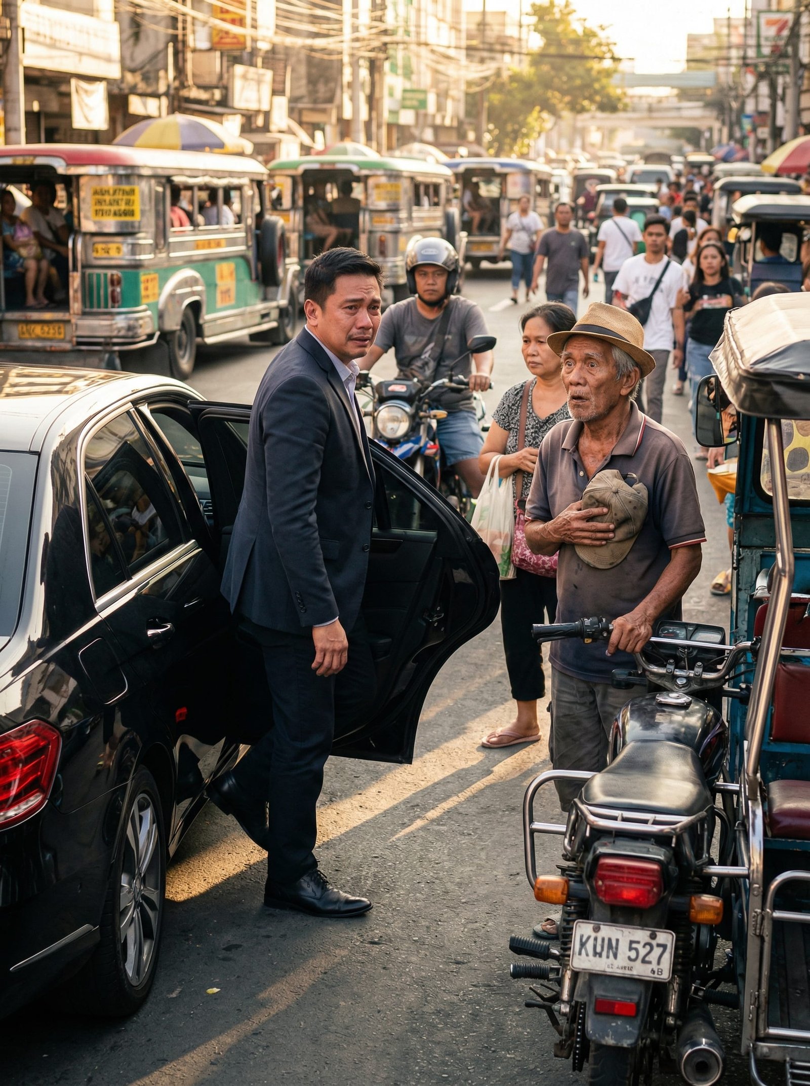 Bandang hapon, sa gitna ng mausok na kalsada, jeep, busina, at siksikang tao, huminto ang sasakyan niya. Bumaba siya at nagsimulang magmasid. At doon niya nakita ang lalaking hinahanap niya.