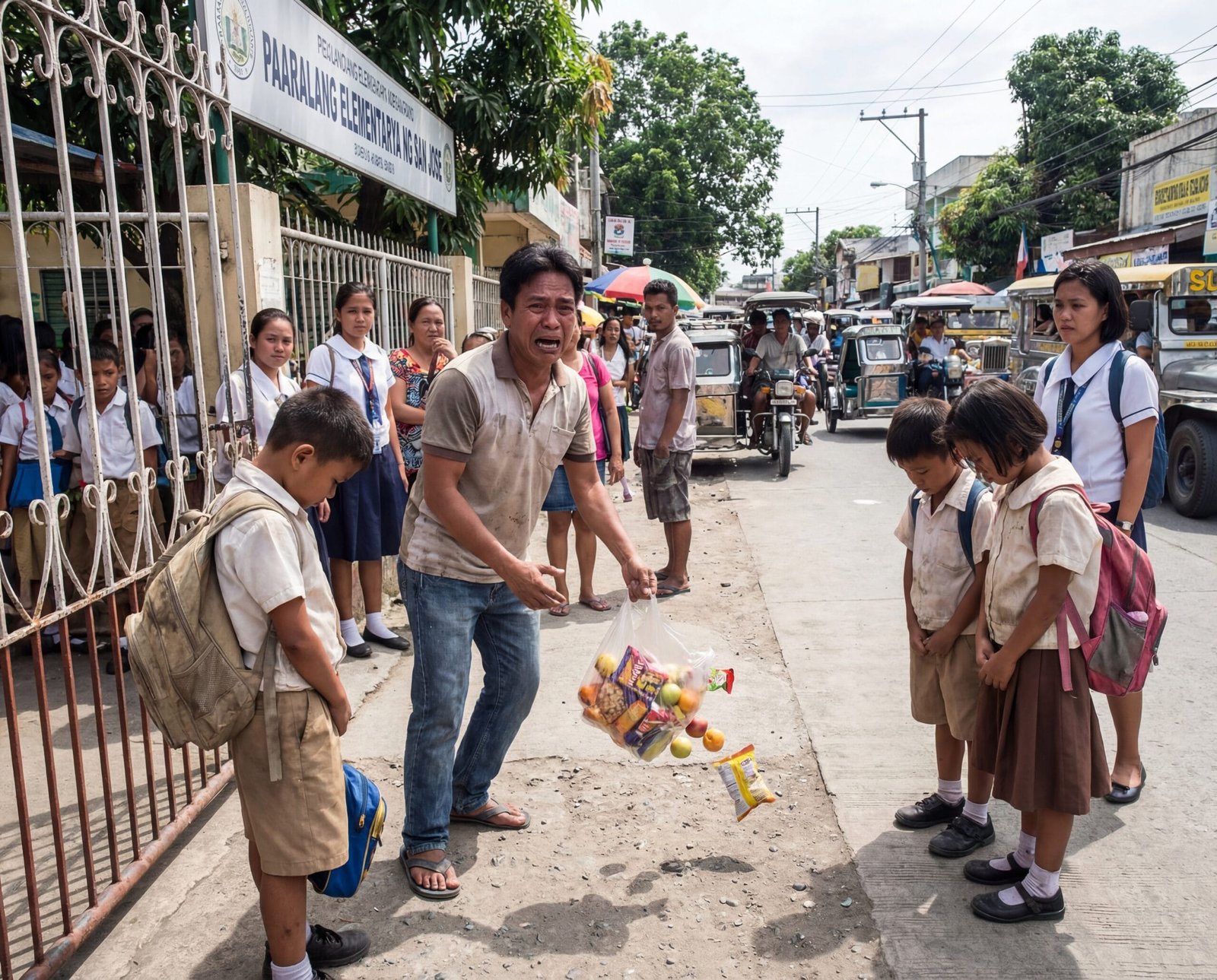 Kaya ngayong umaga, dumiretso siya sa eskwelahan. Surprise sana. Naisip niyang abutan ang mga bata sa gate, yakapin, at ibigay ang pasalubong. Sa isip niya, eksena itong parang sa pelikula—mga batang tatakbo sa kanya, sisigaw ng “Tatay!”