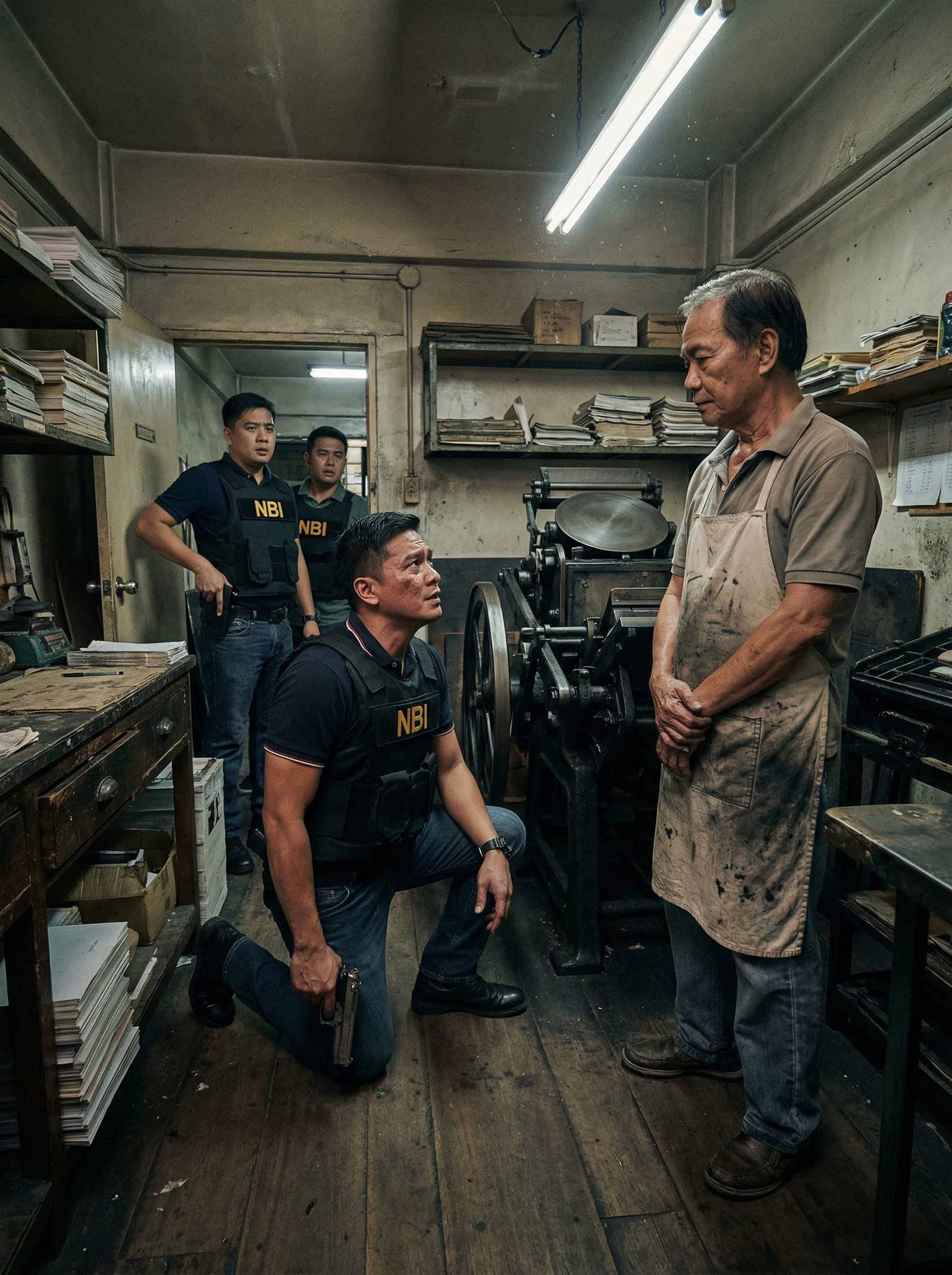 Umalingawngaw ang sigaw sa loob ng masikip na shop. Nanginginig ang ilaw ng fluorescent lamp sa kisame. Sa gitna ng mga lumang makina at tambak na papel, nakatayo ang isang matandang lalaking nakaputing apron na may mantsa ng itim na tinta. Hindi ito tumakbo. Hindi rin ito natigilan. Tahimik lang nitong itinaas ang tingin mula sa lumang printing press na para bang matagal na nitong hinihintay ang pagdating nila.