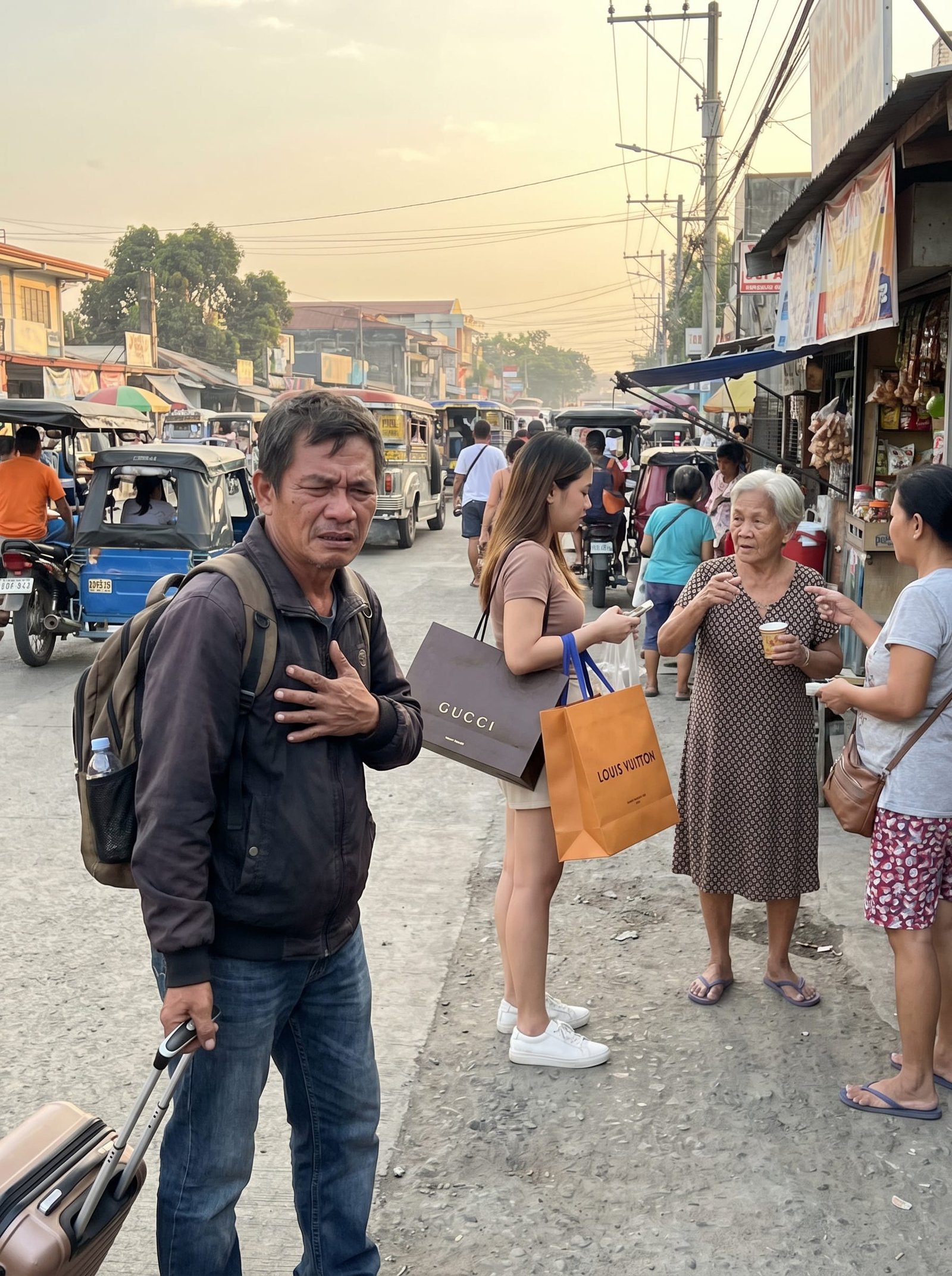 Nakatayo roon si Mila, maayos ang buhok, may hawak na mga shopping bag na may tatak na Gucci at Louis Vuitton, at tila tahimik pang nakikipagkuwentuhan sa isa pang babae. Parang hindi man lang nito napapansin na sa kabilang panig ng daan ay ang biyenan niyang hirap na hirap mangutang ng panghapunan.