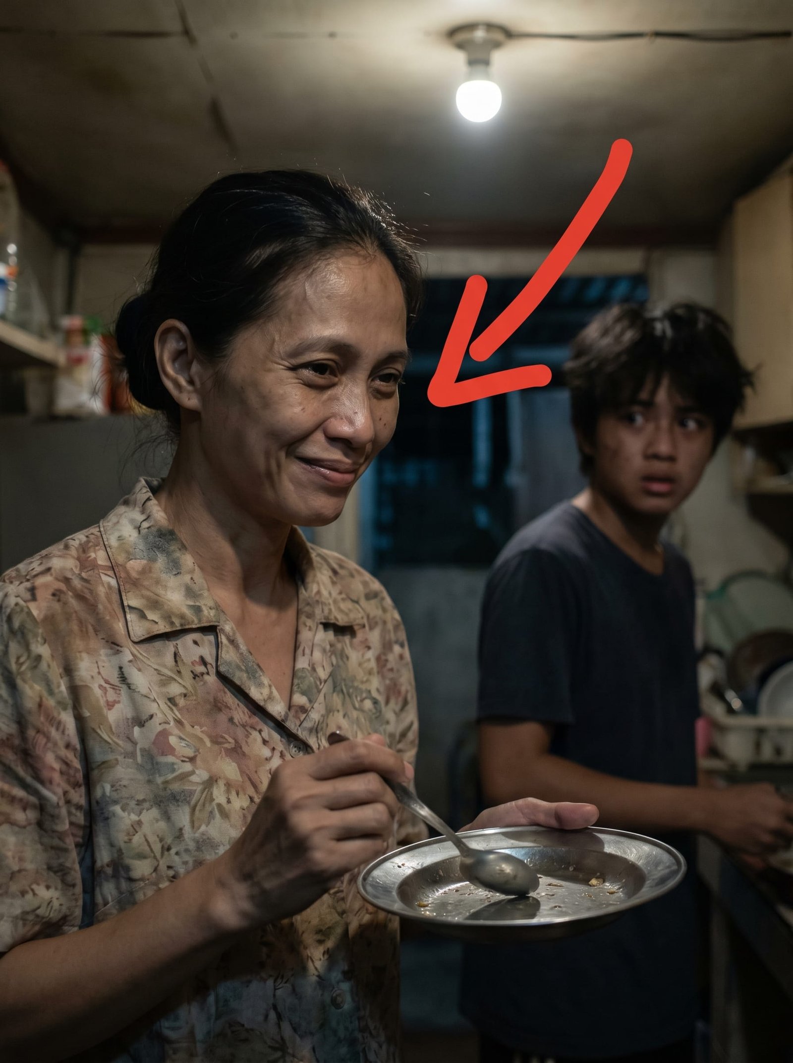 Noong una, hindi niya pinansin. Inisip niyang baka sadyang maliit lang ang gana ni Aling Rosa. Ngunit nang gabing iyon, habang mahina ang ilaw ng bombilya at tahimik nang kumakain ang magkakapatid, napatingin si Marco sa pinggan ng ina. Halos wala itong laman—ilang patak ng sabaw at mumo ng kanin lang. Gayunman, patuloy itong sumusubo kunwari, dahan-dahang ngumunguya, at paminsan-minsan pa’y iinom ng tubig para magmukhang tunay na kumain.