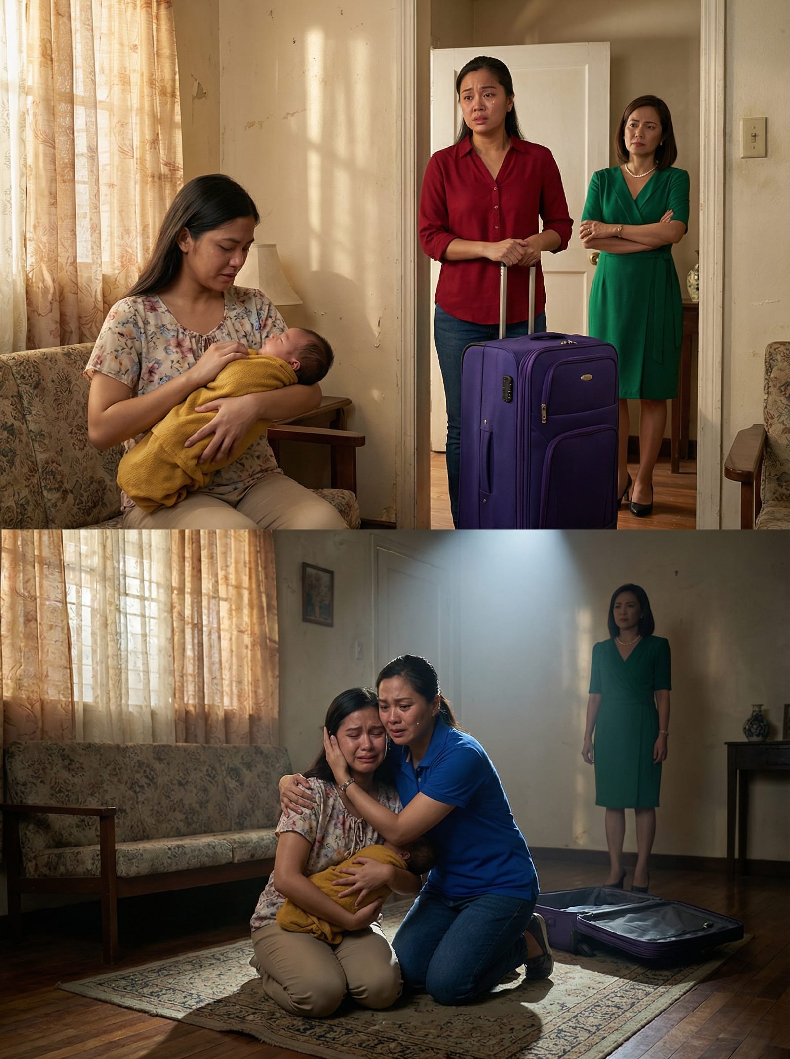 Nakaupo ang kapatid niya sa lumang sofa, hawak ang isang sanggol na nakabalot sa dilaw na kumot. Pinapadede nito ang bata, kinakalma, habang may luha sa mata—luha ng pagod at pangamba. Sa tabi, may maliit na diaper bag, gatas, at mga bote.