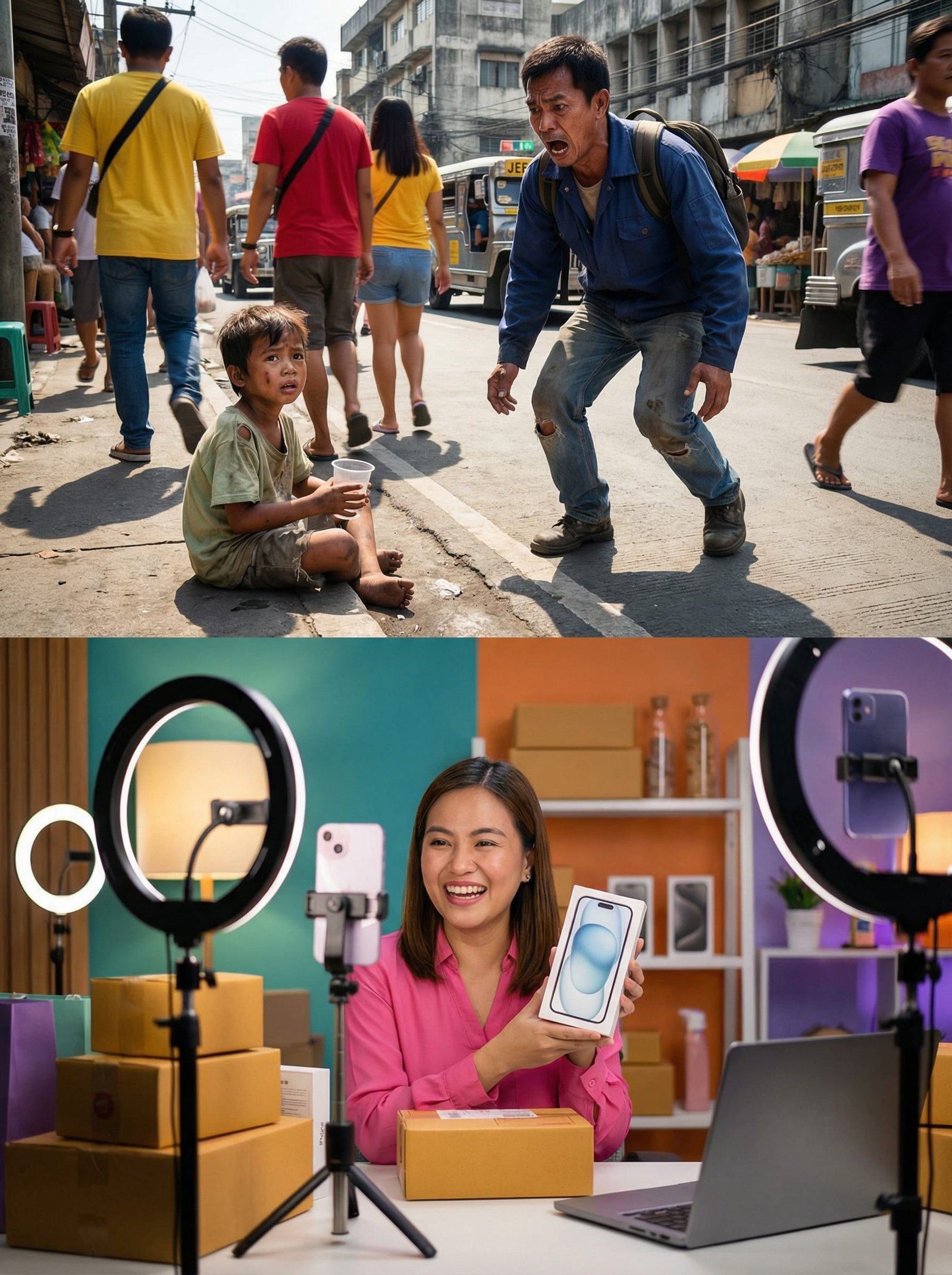 Tumango si Jay, nilunok ang luha. “Nagbebenta po siya… para daw may pambili ng bagong iPhone. Sabi niya… para mas dumami viewers.”