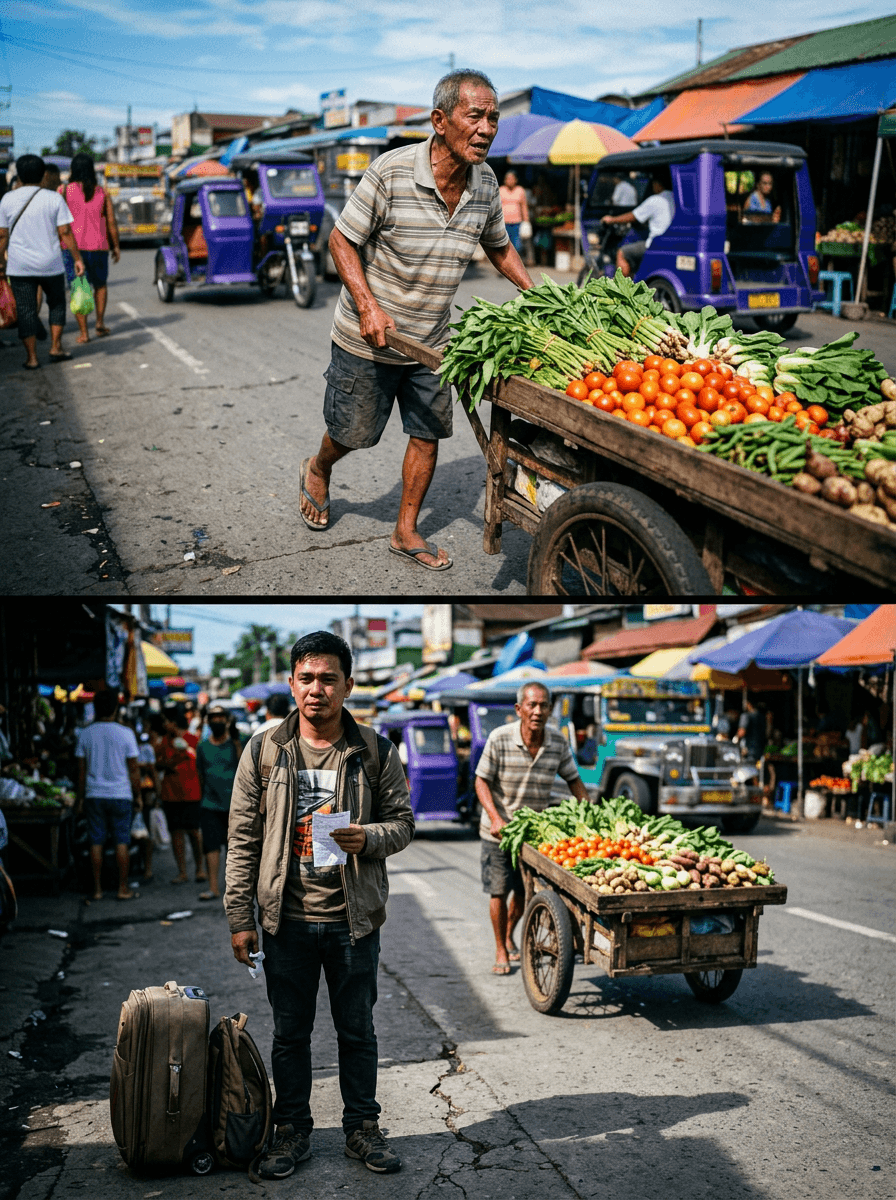 Sa gitna ng maingay na palengke—tila nagsasayawan ang sigaw ng mga tindera, busina ng tricycle, at kaluskos ng plastik na supot—bumaba si Jomar, isang OFW na dalawang taon nang hindi umuuwi. Bitbit niya ang maleta at isang sobre ng resibo ng padala, parang patunay na hindi nasayang ang mga gabing puyat sa abroad.