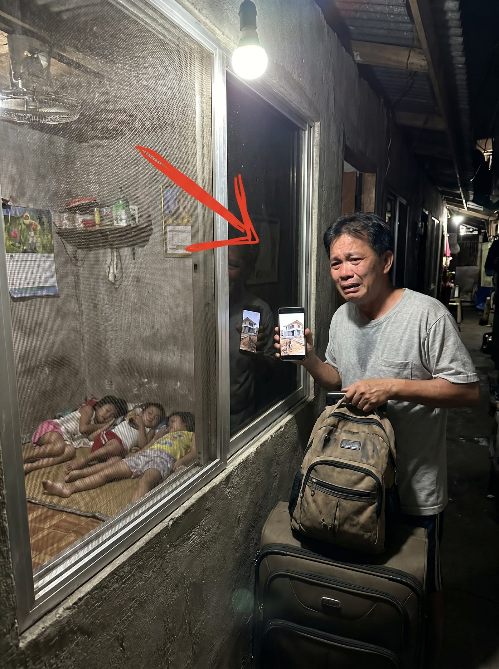 At sa bintana ng kapitbahay, nakita niya ang tatlo niyang anak na magkakatabing natutulog sa iisang banig.