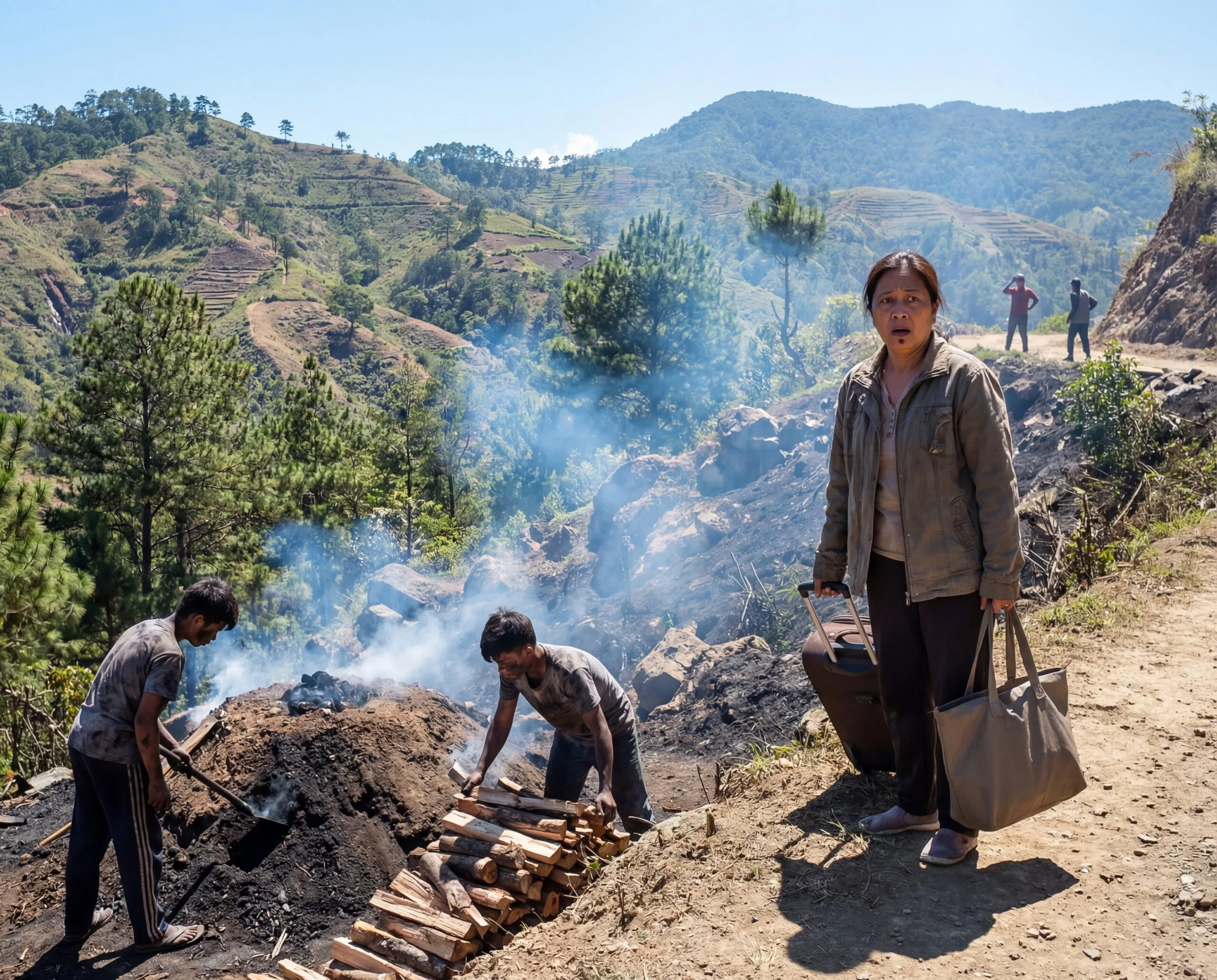 Pag-akyat nila, naamoy ni Jean ang usok bago pa niya makita. Makapal, mapait, parang nagbabadya ng luha. Sa gilid ng daan, may mga hukay na may apoy, may bunton ng kahoy, at mga batang nagbubuhat.