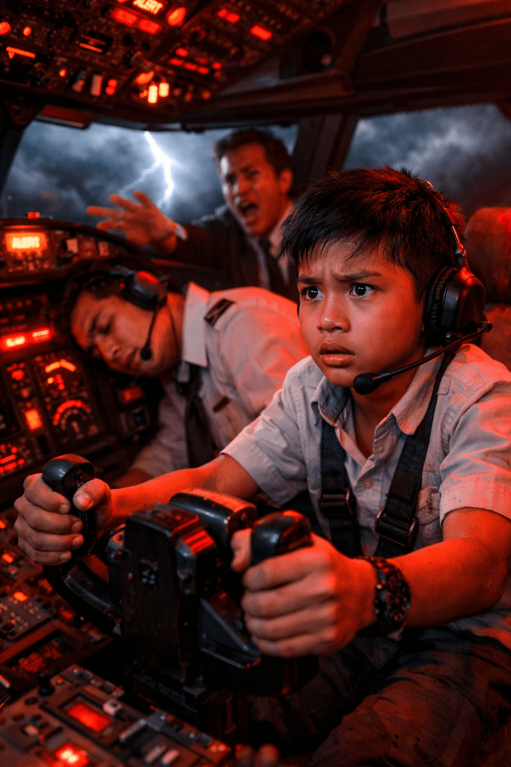 Pagbukas ng cockpit, nanlaki ang mga mata ni Marco. Iba pala kapag totohanan na. Ang mga ilaw ay kumikislap. May alarm na paulit-ulit tumutunog. Ang captain ay nakasubsob, walang malay. Ang co-pilot ay bagsak sa gilid, mahina ang paghinga. Sa windshield, tanging itim na ulap at kidlat ang makikita.