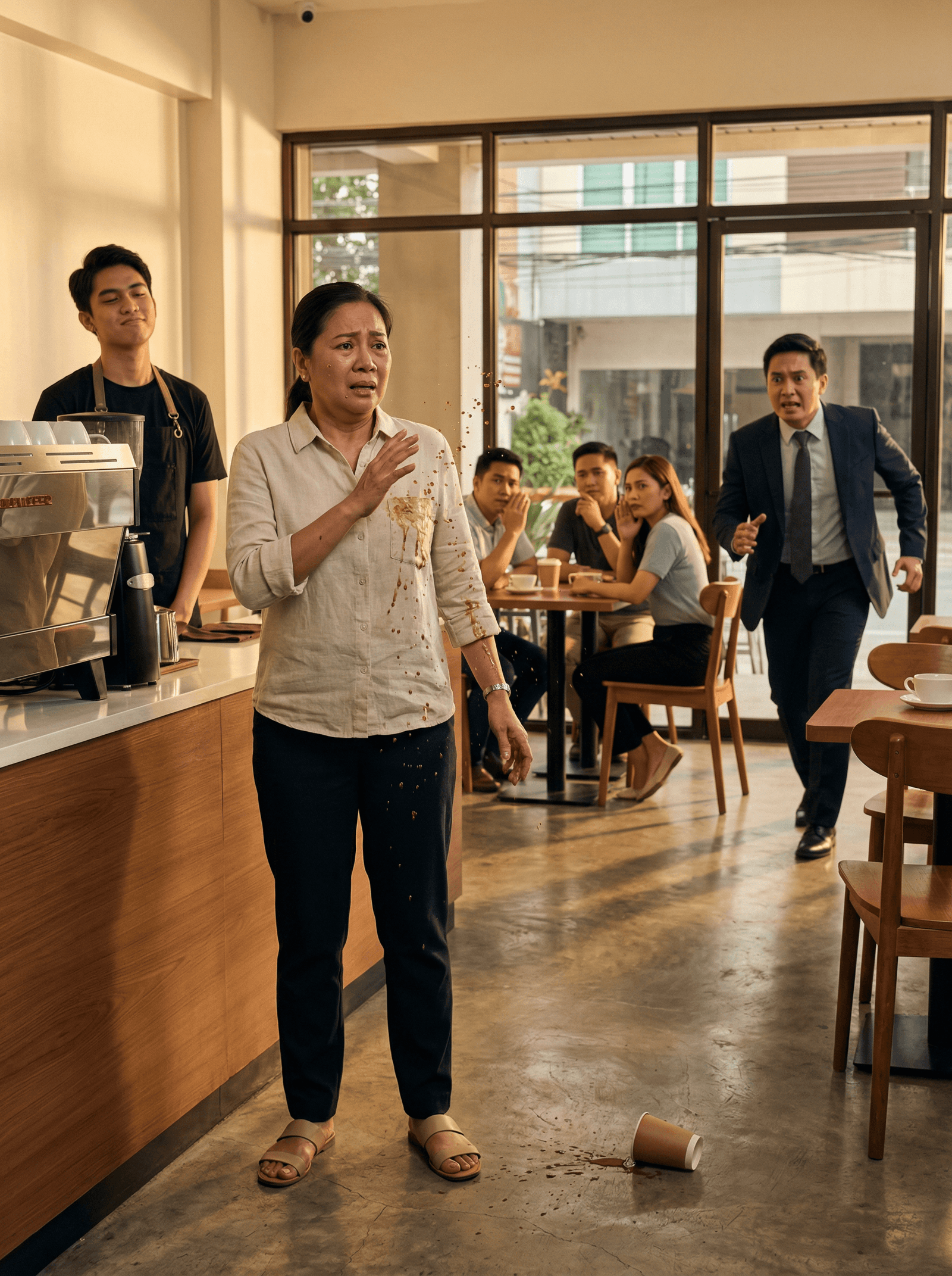 At sa loob lamang ng ilang segundo, ang café na kanina’y puno ng yabang at padalos-dalos na paghatol ay napalitan ng katahimikang may halong takot.