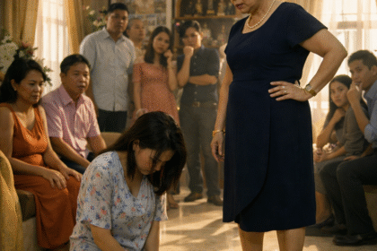 Nakayuko si Lea sa malamig na marmol na sahig, nanginginig ang tuhod habang nakaluhod sa gitna ng sala.Sa paligid niya, punô ng bisita ang bahay—mga kamag-anak, kaibigan, at kasosyo sa negosyo ng pami...