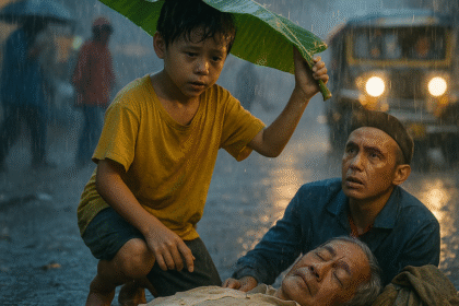Gabi na at halos mabura na ang mga ilaw ng Maynila sa kapal ng ulan; ‘yung buhos na parang galit na galit, humahampas sa bubong, sa kalsada, sa balat ng bawat taong napadpad sa labas nang hindi handa....