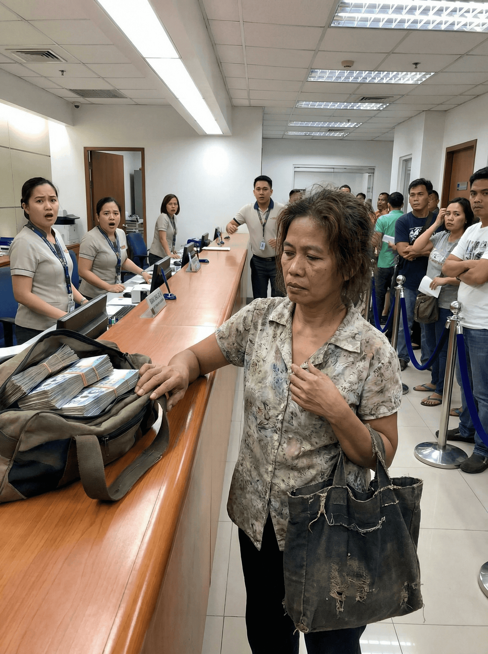 Ngunit habang inililipat ang bag sa mas ligtas na mesa, napansin ng branch manager ang mga kamay ni Aling Cora—magaspang, nangingitim ang gilid ng kuko, at halatang sanay sa mabibigat na trabaho. Hindi ito kamay ng babaeng lumaki sa luho. Hindi rin mukha ng isang taong basta nagkamali lang ng pasok sa bangko.