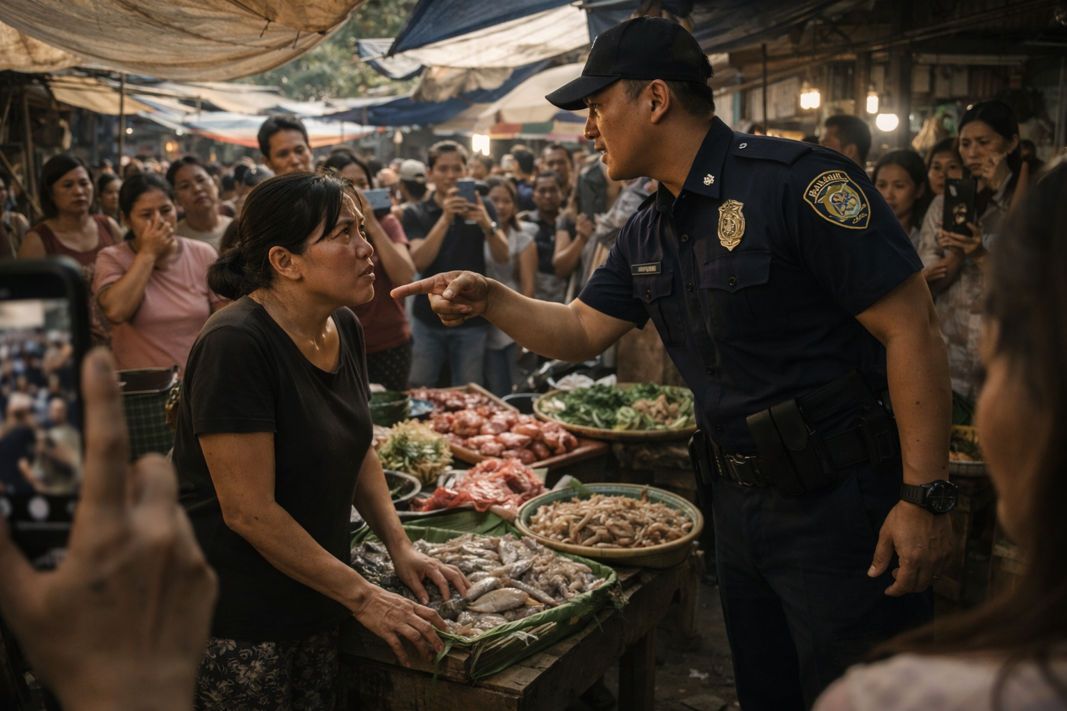 Doon parang may pumitik sa ulo ng pulis. Bigla siyang lumapit at mas tinutukan ang tindera. “Ah, matapang ka? palengke vendor ka lang, tapos ganyan ka magsalita?”
