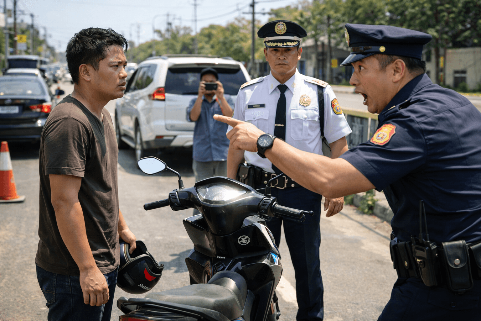 Lalong umigting ang ingay. Sa isang cellphone screen, kitang-kita ang eksena: rider na mahinahon, pulis na sumisigaw. May mga komento na agad, “Power trip,” “Abuso,” “Pa-hero.”