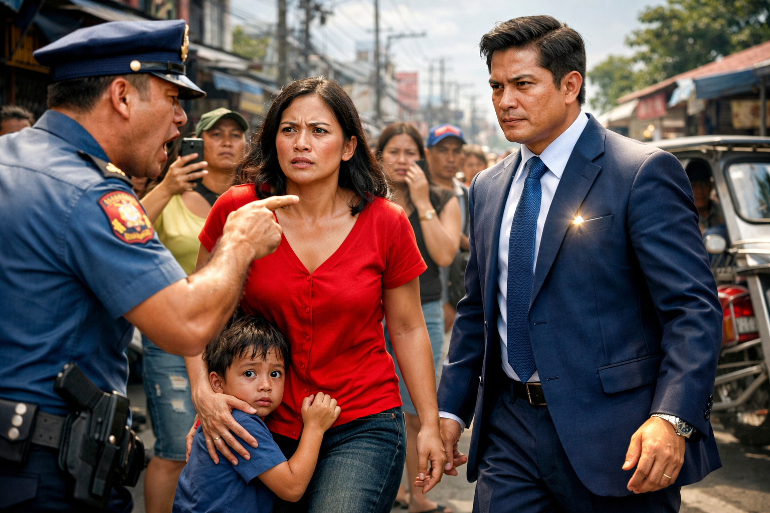 Maingay ang kalsada sa palengke area. Nag-uunahan ang tricycle, may naglalako ng prutas, at may mga taong nagkakagulo sa tawaran. Sa gilid ng kalsada, hawak ni Mara ang kamay ng anak niyang si Jiro, limang taong gulang. Pawis na pawis ang bata, at mahigpit ang kapit sa bewang ng nanay niya, parang natatakot sa dami ng tao.