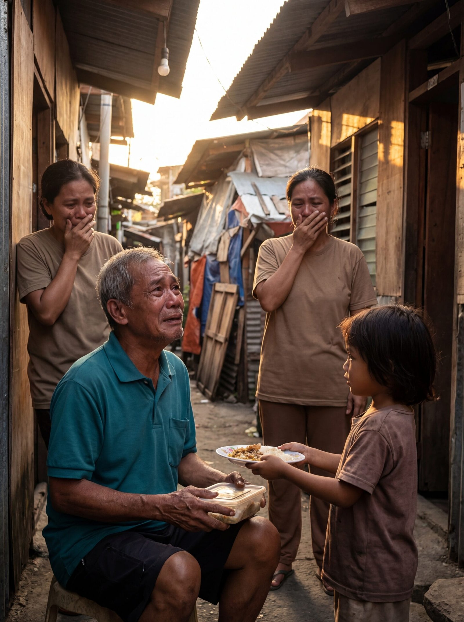 Napatigil ang matanda. Parang hindi siya sanay na tawaging “Lolo” nang may lambing. Kinuha niya ang pagkain, ngunit bago niya isubo, napaluha siya—tahimik, parang ayaw ipakita.
