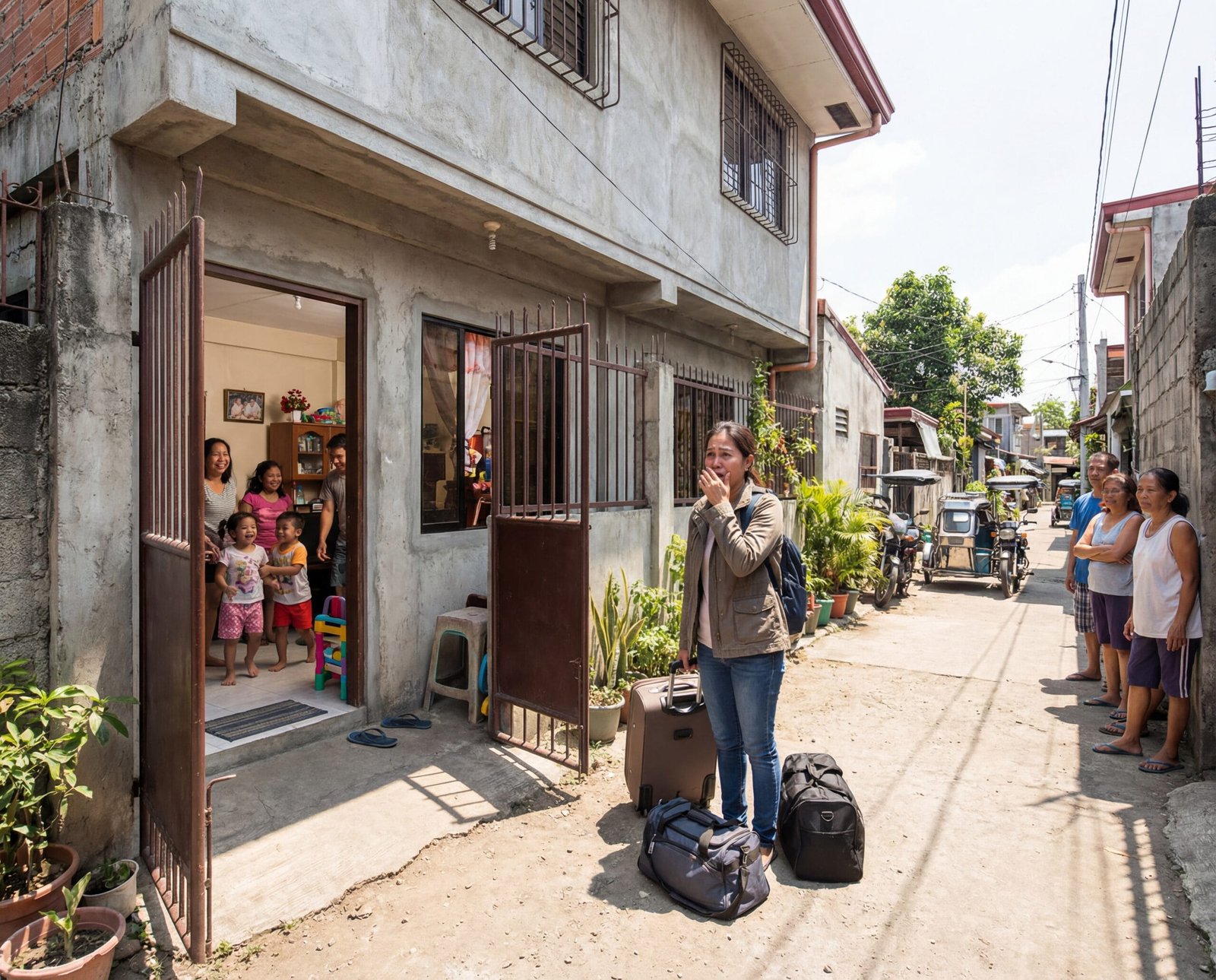 At sa likod niya, nagtipon ang mga kapitbahay, may mga matang nag-aalinlangan at may mga mukhang alam na ang kuwento. Sa unang pagkakataon matapos ang pitong taon, naramdaman ni Mira ang bigat ng pagiging “umuwing OFW”—hindi lang sa balikat, kundi sa buong pagkatao.