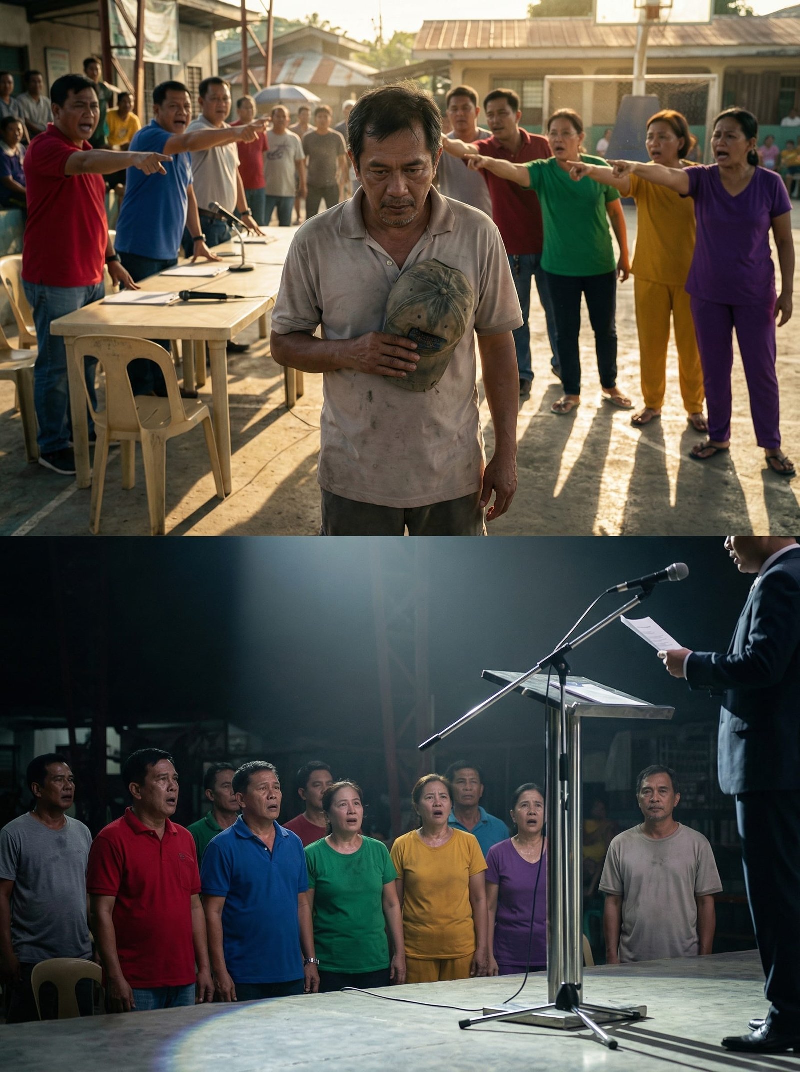 Sa gitna ng covered court ng Barangay San Isidro, mainit ang araw pero mas mainit ang tinginan ng mga tao. May mesa sa harap, may mikropono, at may mga upuang plastik na halatang hiniram-hiram lang. Isang “barangay hearing” daw—pero para kay Mang Ruben, para itong public execution.