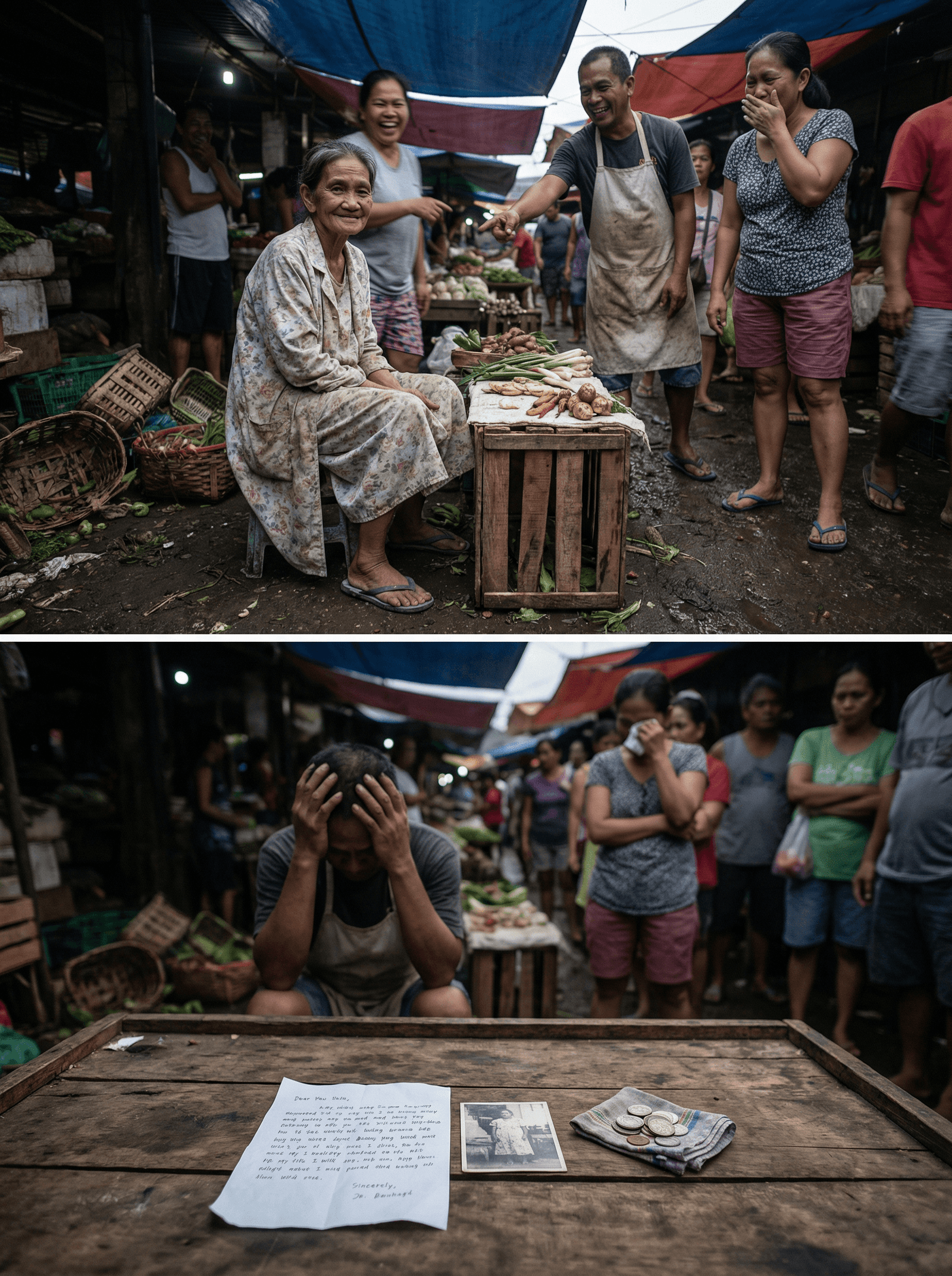 Nang araw ding iyon, isinara ng maaga ang ilang pwesto upang samahan si Jun sa munting burol ni Aling Marta. Dinala nila ang litrato, ang sulat, at ang balitang hindi na kailangang mangamba ng matanda—dahil ang apo niyang pinakamamahal ay makakapag-aral.
