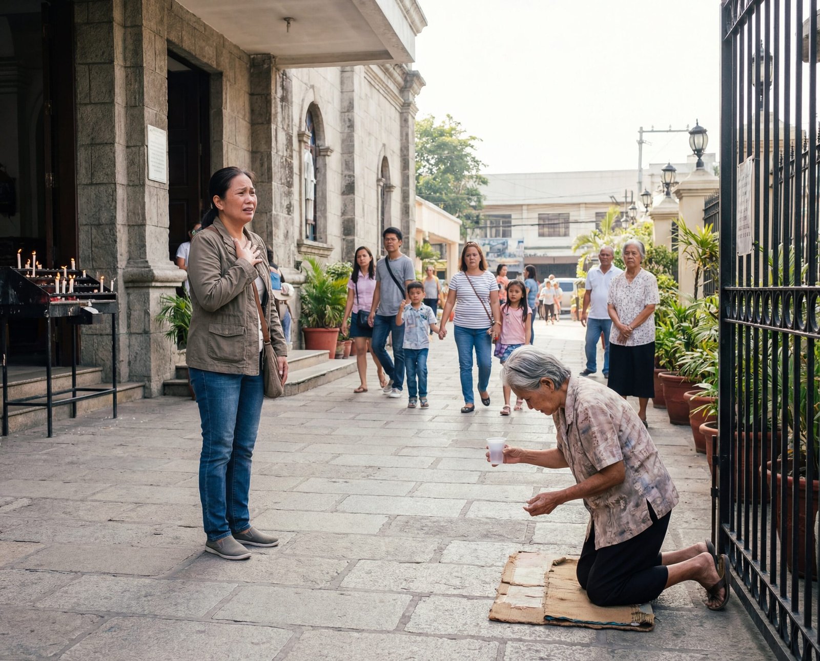Parang may sumabog sa dibdib ni Karen. Nawala ang tunog ng misa, nabulag ang mundo sa luha. Ang lola niyang pinapadalhan niya buwan-buwan… ang lola niyang akala niya’y inaalagaan… namamalimos sa harap ng simbahan.